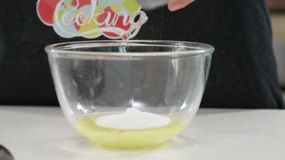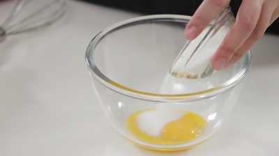 ![]() | ![]() Cho lòng đỏ trứng và 25g đường vào âu, dùng máy đánh trứng đánh cho đến khi trứng chuyển màu vàng nhạt là được. |