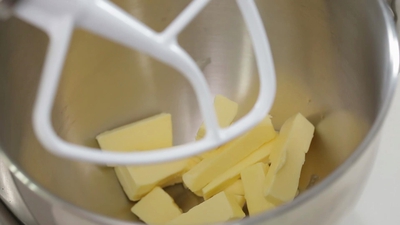 ![]() | ![]() Cho bơ và 25g đường vào một âu khác, đánh cho tan đường, bơ chuyển màu sáng. |