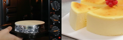 ![]() | ![]() Dùng giấy bạc quấn quanh khuôn bánh, nướng cách thủy với chế độ lửa trên ở 200 độ C trong 15-20 phút. |